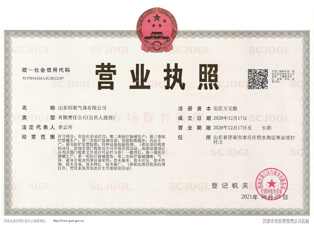 ??? 山東明氧氣體有限公司的前身為始建于1993年的章丘市明水氧氣廠,2020年12月企業(yè)由民營(yíng)獨(dú)資轉(zhuǎn)型升級(jí)為山東明氧氣體有限公司,企業(yè)進(jìn)入新的發(fā)展階段。公司位于山東省濟(jì)南市章丘區(qū)明水街道杲家坡村村北,占地面積4000平方米,注冊(cè)資金500萬元,固定資產(chǎn)投資3000萬元,主要經(jīng)營(yíng)項(xiàng)目為醫(yī)用氧氣、工業(yè)氧氣、氮?dú)狻⒏呒兊獨(dú)狻鍤狻⒏呒儦鍤狻⒏呒兒狻⒍趸肌⒒旌蠚怏w等各種工業(yè)氣體、高純氣體、混合氣體的充裝銷售、各類氣瓶的銷售、安全閥校驗(yàn)、鋼質(zhì)無縫氣瓶的檢驗(yàn)等。